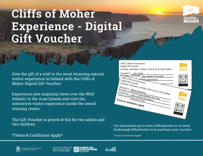 Share some Moher magic, by gifting loved ones a Cliffs of Moher Experience digital gift voucher!